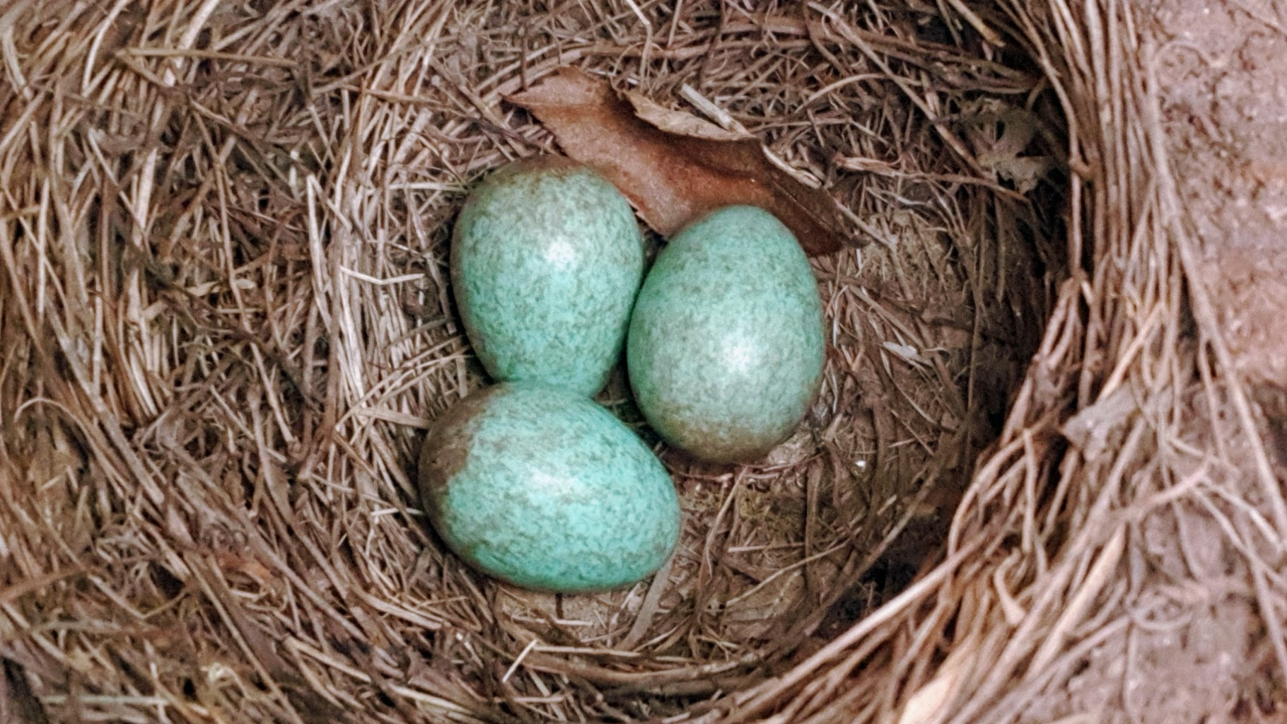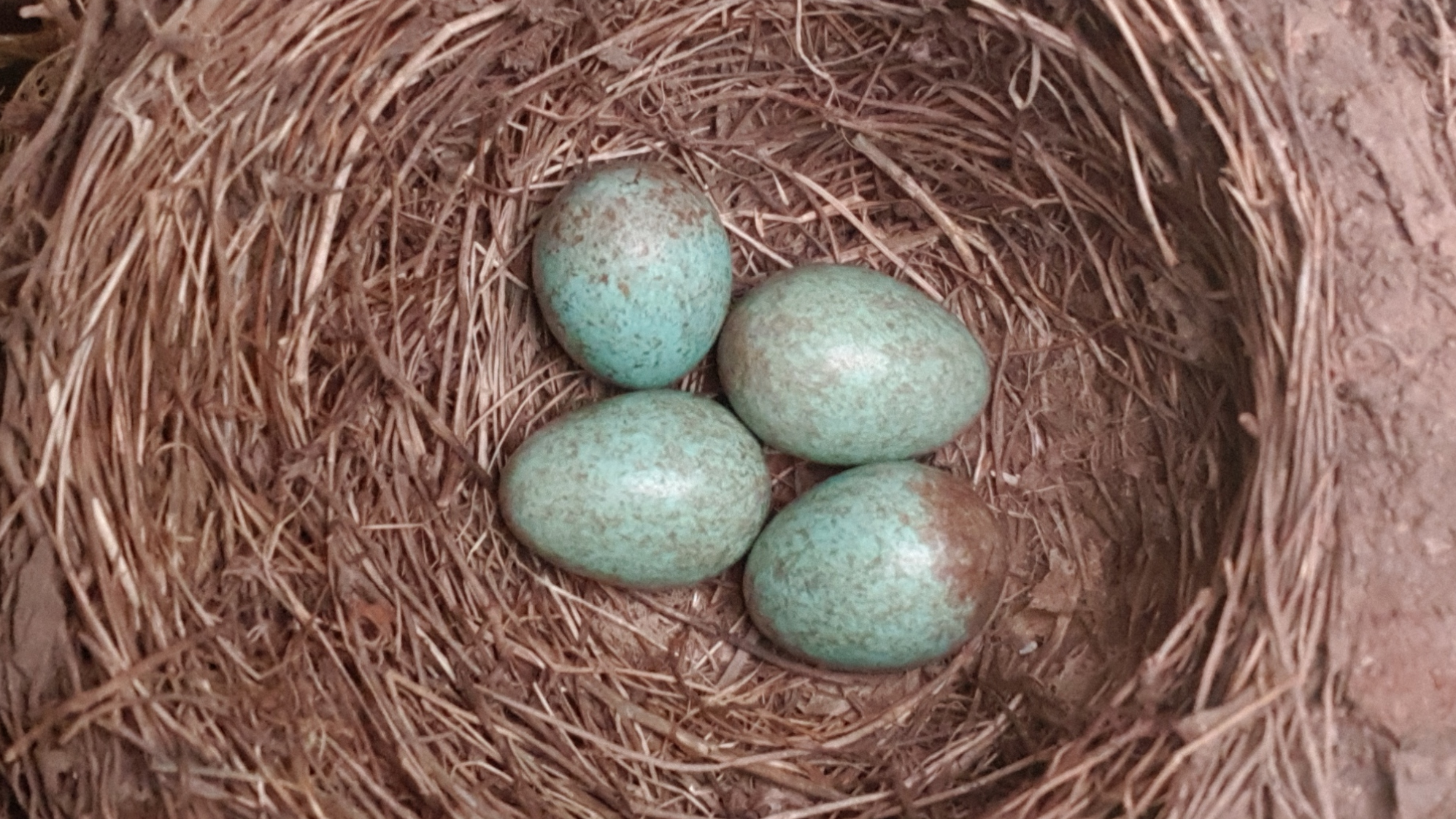 Im Verlauf von Freitag und Samstag hat die Amsel noch zwei weitere Eier gelegt.